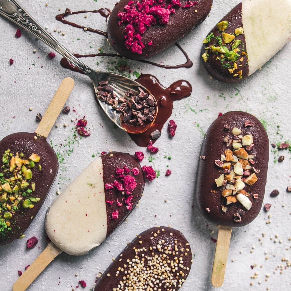 - Gourmet Popsicles in fruity and creamy flavours